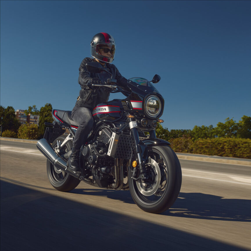 A retro külső mögött természetesen a legmodernebb technológia rejlik. A CB1000F motorjához társított hattengelyes helyzetérzékelőnek (IMU) és elektronikus gázmarkolatnak (TBW) hála három gyári – teljesítményleadást, motorféket, egykerekezés-gátlót, illetve HSTC-t szabályozó – és két szabadon programozható beállítás közül választhat a pilótat, visszajelzőként pedig a TFT-műszeregység szolgál.